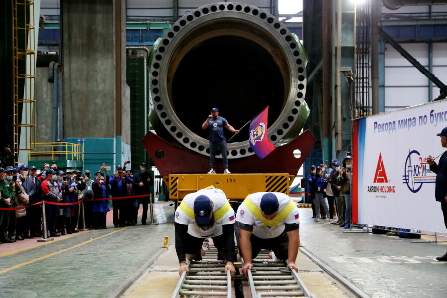 В День работника атомной промышленности, 28 сентября, на производственных площадях Волгодонского филиала «АЭМ-Технологии» произошло историческое событие. Команда атлетов из АНО «Сильнейшая нации мира» установила мировой рекорд по буксировке корпуса атомного реактора.