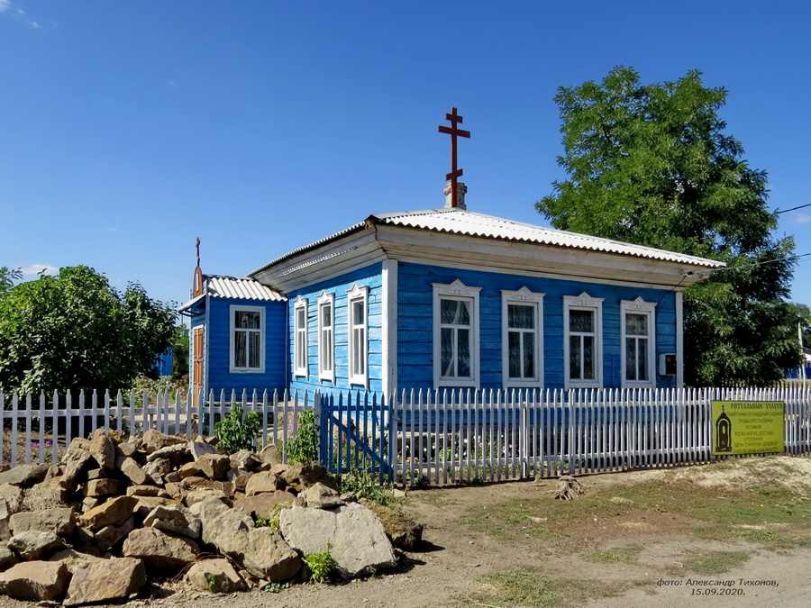 От кургана до автодороги 3,6 км. Через 7 км сам хутор Синий Курган — Лозновское сельское поселение, Цимлянского района. Пока, как нам показалось — это умирающий хутор. При въезде мы увидели брошенное двухэтажное здание и заброшенный, вероятно, сельский клуб, к которому примыкают несколько заросших деревьями бывших улиц хутора. Правда, напротив клуба новенький вагончик ФАПа. Сегодня здесь проживает около 130 человек.