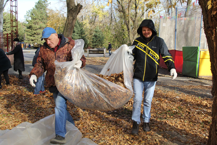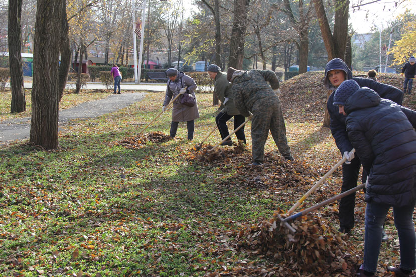 Участники субботника убрали более 460 кубометров опавшей листвы, а также мусор и сухие ветки.