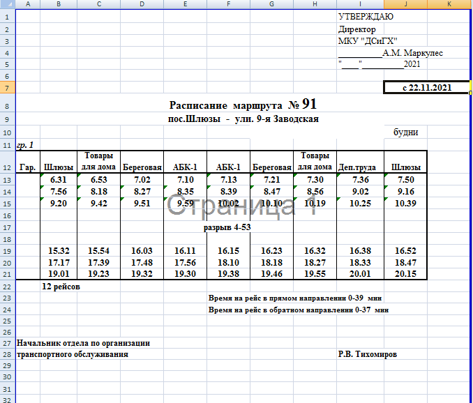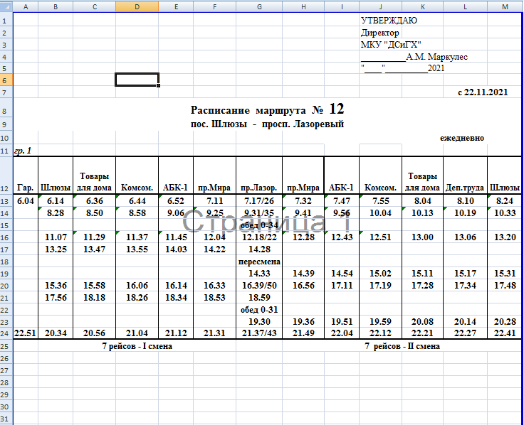 Расписание маршрута №12