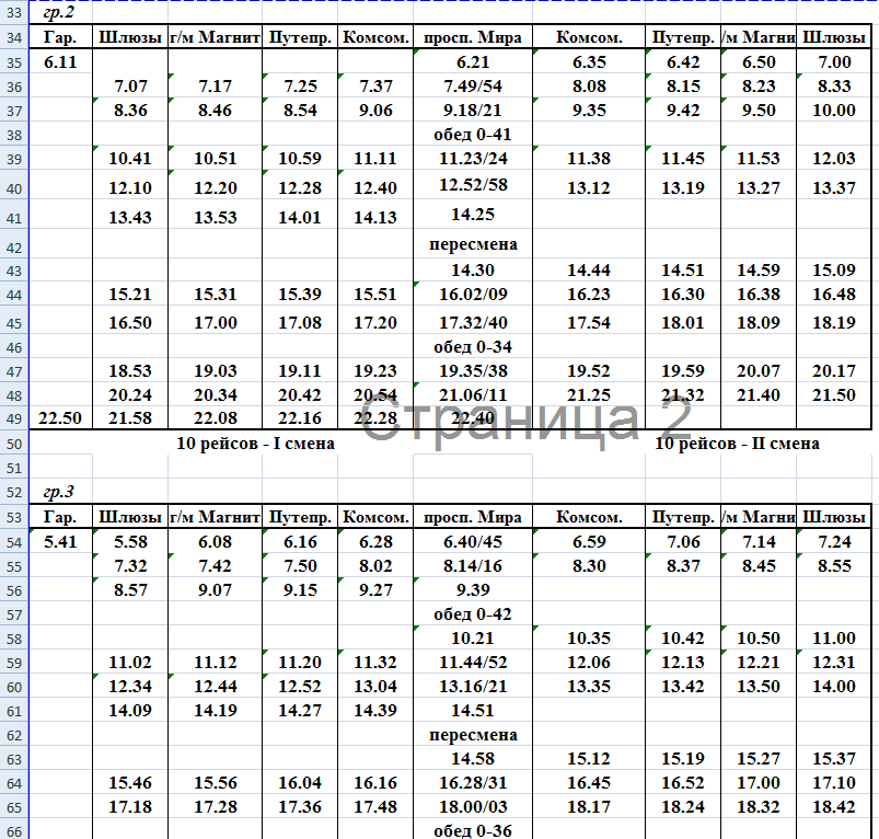 Расписание движения маршрута №10