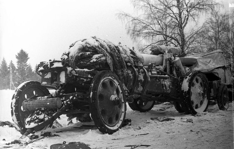 Трофейное немецкое тяжелое орудие Клин. Московская область. 1941 год.Фото: Б. Эйберг РГАКФД, 0-102906