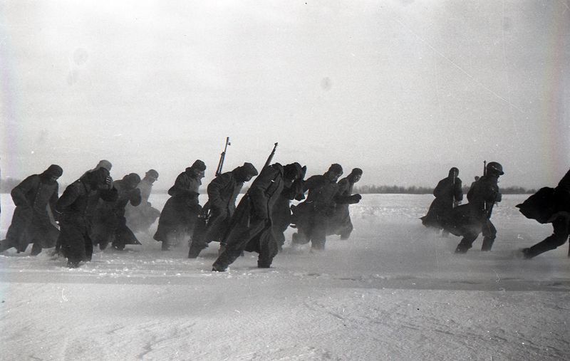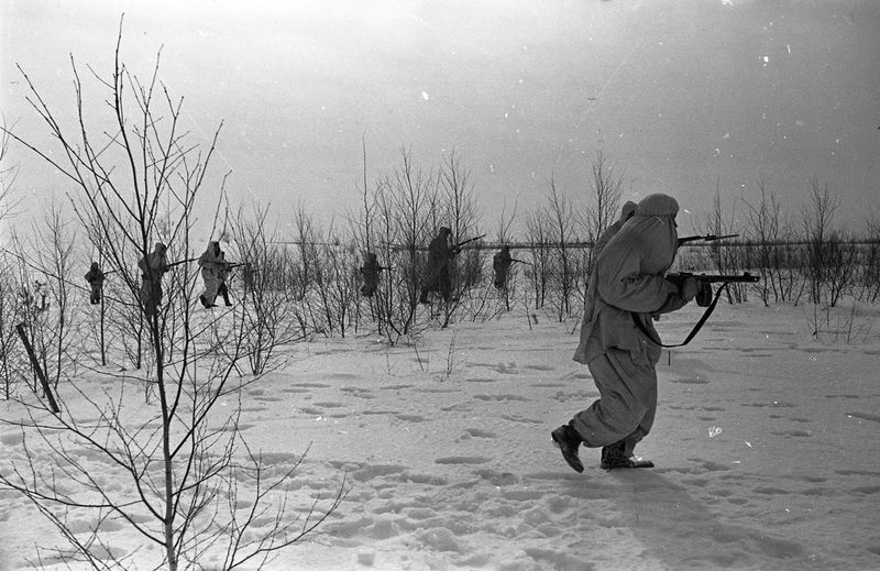 Автоматчики под командованием старшего лейтенанта Е.П. Елисеева идут в наступление Московская область, 1941 год.Фото: В. Гребнев РГАКФД. Арх. № 0-291946