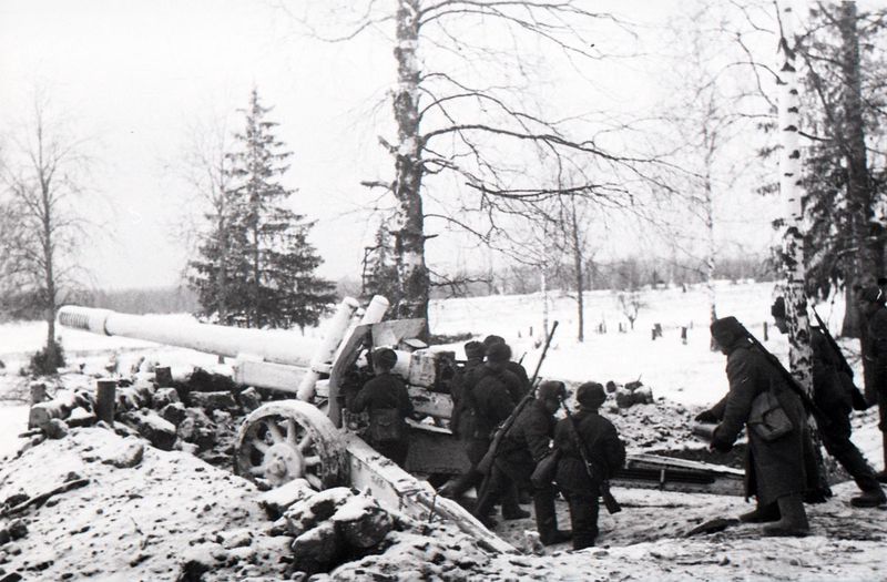 152-мм гаубица-пушка на огневой позиции Западный фронт. 1941.Фото: Л. Великжанин РГАКФД. Арх. № 0-256176
