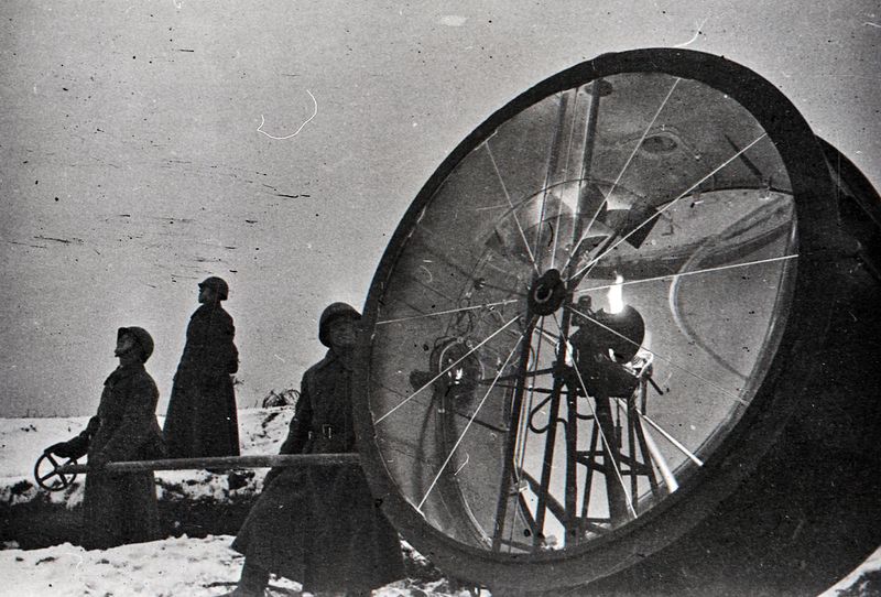 Прожекторщики. Бойцы войск наблюдения и оповещения о воздушном нападении контролируют московское небо. 1941 год.Фото: С. Струнников РГАКФД. Арх. № 0-272341
