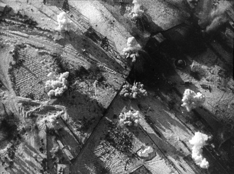 Нанесение бомбовых ударов по территории, оккупированной войсками вермахта. Московская область Декабрь 1941 Кадр из д/ф «Разгром немецко- фашистских войск под Москвой». ЦСКX. 1942.Фото: РГАКФД. Арх. № 21309