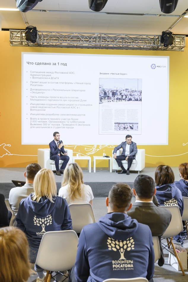 Молодые специалисты Ростовской АЭС Александр Морозов и Надежда Неволина приняли участие в VII Международном форуме гражданского участия #МыВместе, в рамках которого Генеральный директор Госкорпорации «Росатом» Алексей Лихачёв провел встречу с волонтерами отрасли и заслушал восемь наиболее значимых докладов социального направления.