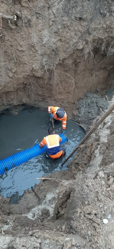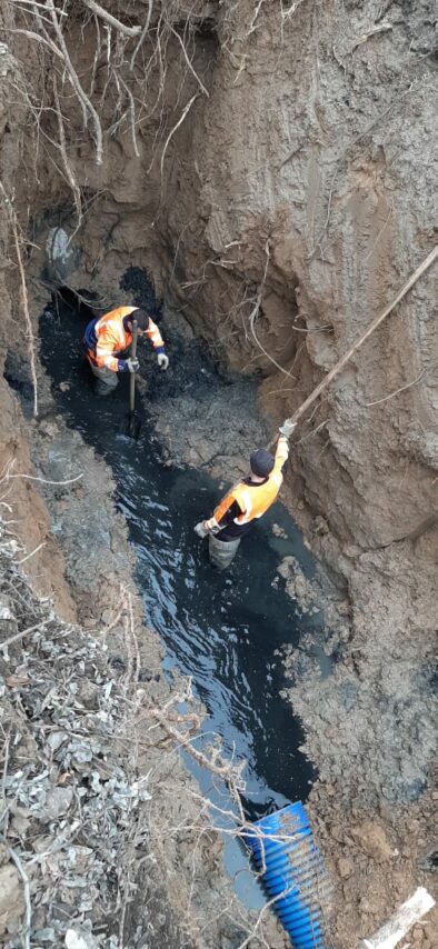 «Водоканал» выполнил работы по укладке трубопровода диаметром 400 мм магистральной канализации проходящей в районе многоквартирного дома №9 по ул. Индустриальной.