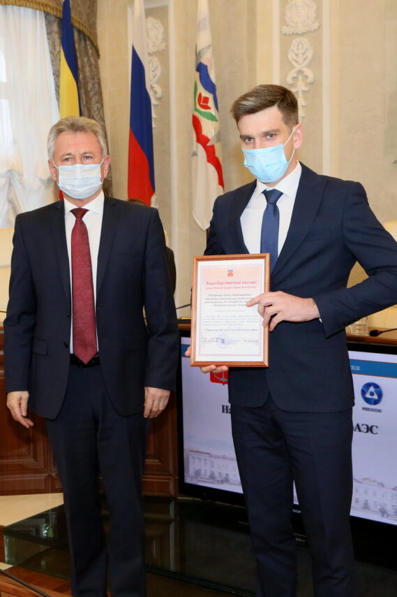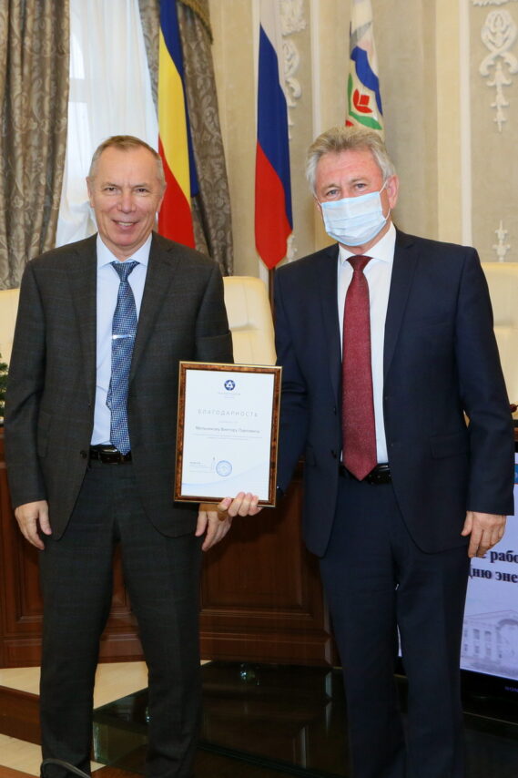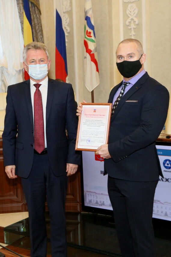 Директор Ростовской АЭС Андрей Сальников в свою очередь поблагодарил Виктора Мельникова за многолетнее партнерство и вручил главе Благодарность генерального директора концерна «Росэнергоатом».