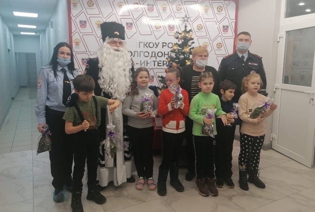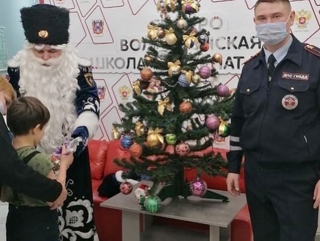 В этом году Пожарный Дедушка Мороз поздравлял ребятишек не один, а совместно с сотрудниками полиции и ГИБДД города Волгодонска. Взрослые вместе с поздравлениями рассказали детям о том, как уберечь себя от огня и опасности на дороге.