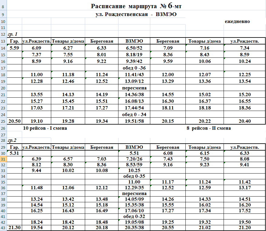 Расписания движения маршрута №6-мт