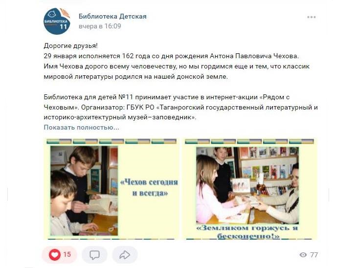 В преддверии 162-й годовщины со дня рождения А.П. Чехова учреждения культуры Волгодонска приняли участие в интернет-акции «Рядом с Чеховым».