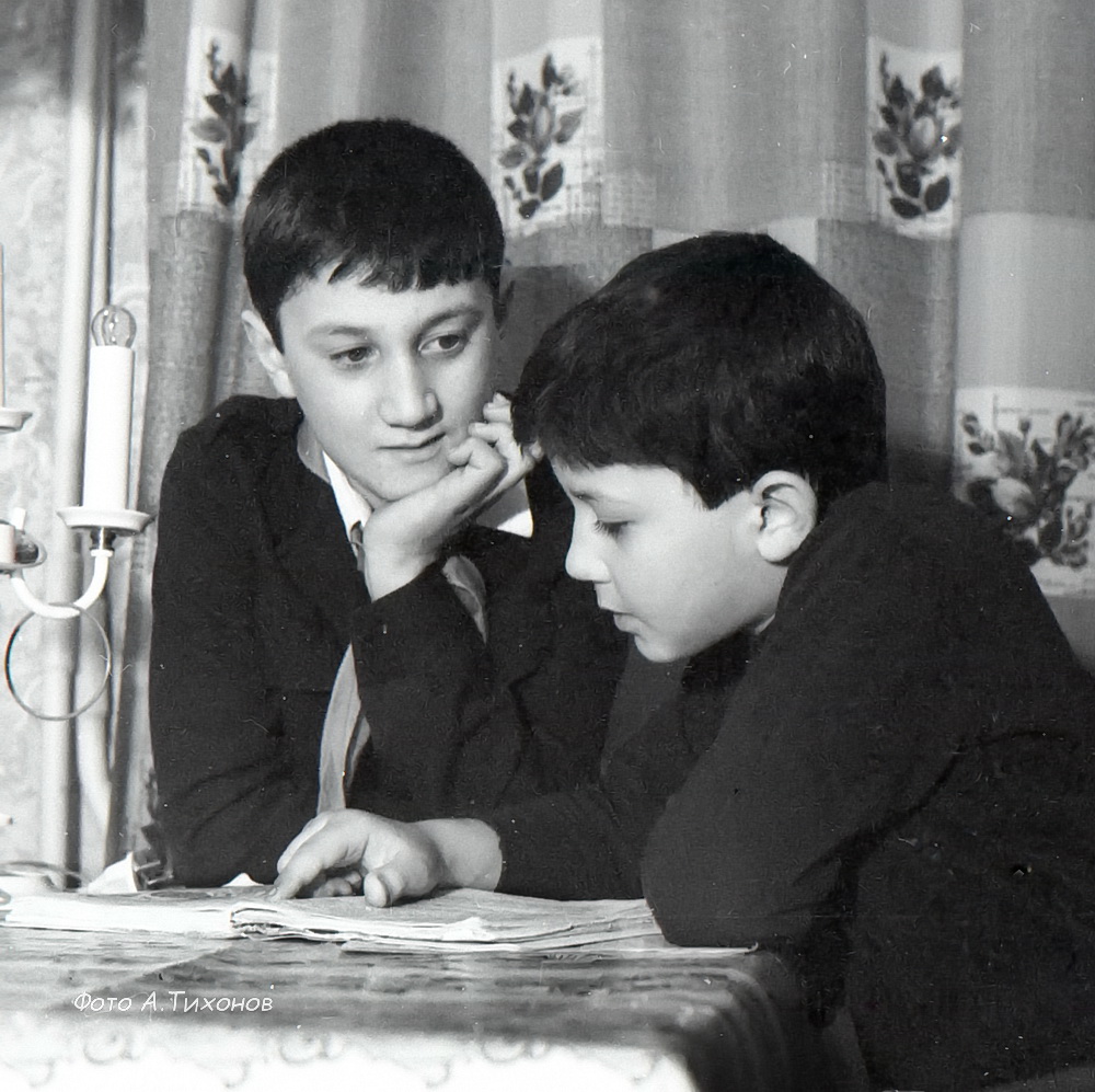 — Помните космический корабль и смерть летчика-космонавта В. Комарова? Я был тогда еще маленьким, но сообщение по радио поразило. Тут же сел за пианино и написал пьесу. Ракета, торжество звуков, вдруг—провал тишина и слабые сигналы в Галактике, трагедия случившегося. Местный композитор рекомендовал писать. В одиннадцать лет была песня о Волгограде, но «Пионерская правда» куда послал ноты, очень мягко, корректно посоветовала мне побольше работать над собой. Интересное произведение. (смеется).
