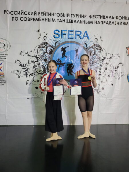 В номинации «Эстрадный танец/соло» Арина заняла первое место, Полина –второе. «Джаз танец/соло»: Арина – первое место; Полина – третье.