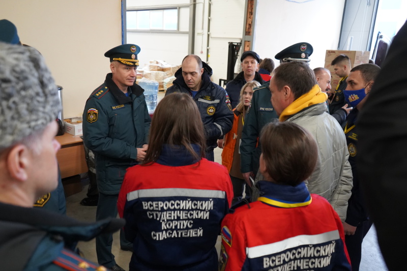 Ему рассказали о работе штаба, логистике доставки гуманитарной помощи и показали процесс разгрузки, фасовки и формирования помощи.