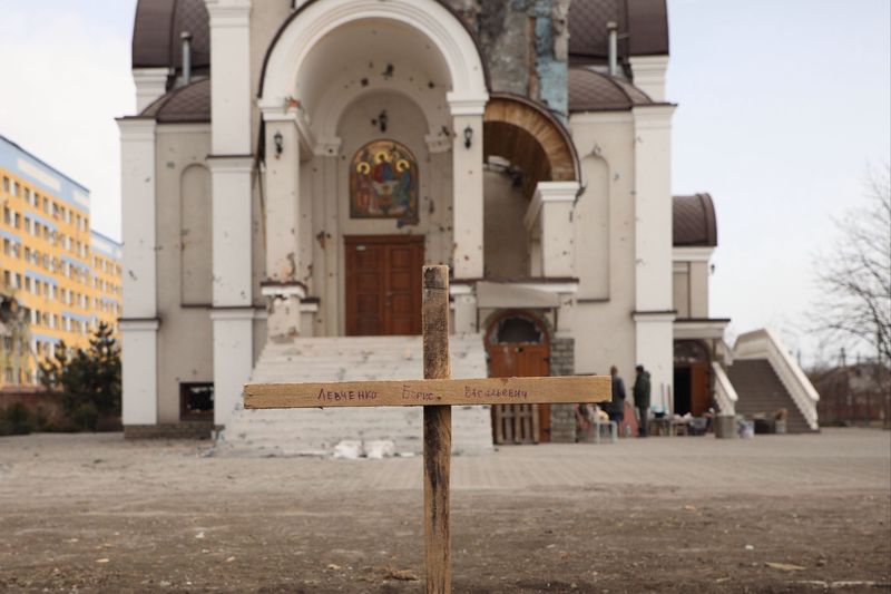 На церковном дворе — свежие могилки. Над некоторым — сбитые наспех кресты. Это захоронения погибших недавно горожан.