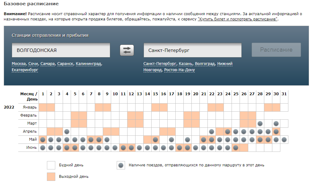 Согласно расписанию на сайте РЖД, у волгодонцев есть возможность доехать до любой из двух столиц на поезде № 114С Адлер — Санкт-Петербург в три ближайших даты: 28 и 30 марта, а также 4 апреля. Потом в курсировании поездов по этому маршруту будет перерыв до 22 апреля.