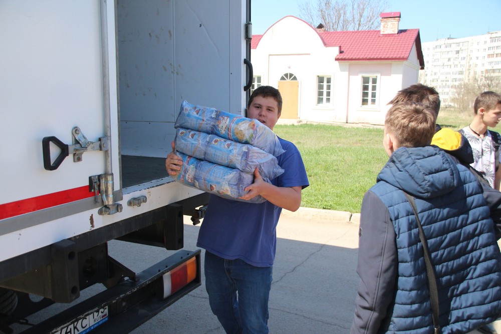 11 апреля в гуманитарный центр прибыла первая машина с помощью. Привезла крупы, соль, сахар, муку, растительное масло, консервы, бутилированную воду. Всего – около четырех тонн продуктов.