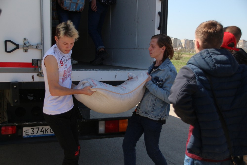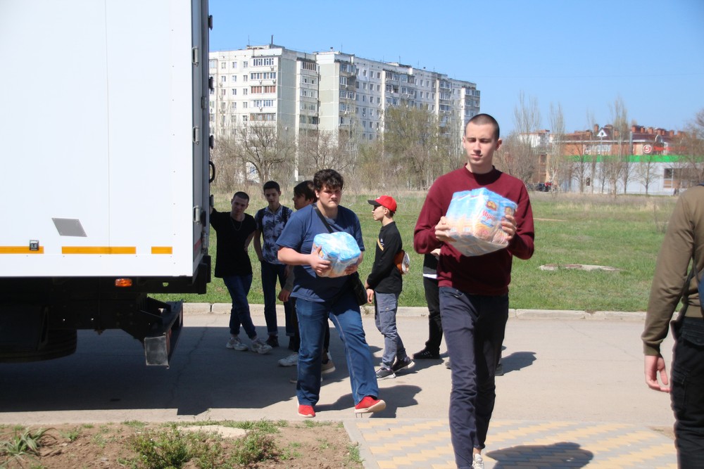 Разгрузить продукты помогли волонтеры – студенты волгодонских техникумов металлообработки и машиностроения (ВТММ) и общественного питания и торговли (ВТОПиТ).