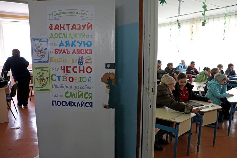 Удержать в классе малышню очень сложно. Сама природа требует от них движения. Они крутятся и вертятся, а шалости могут привести к неуправляемому хаосу. Чтобы занять детей, предлагаю педагогу-психологу Оксане Никитиной: «А давайте проведем открытый урок мира». «Урок добра и адаптации, — шепчет преподаватель. — Дети еще боятся людей в камуфляже, они же два месяца провели под обстрелами, а вы в защитном костюме. Они увидят, что вы добрый, и перестанут бояться».