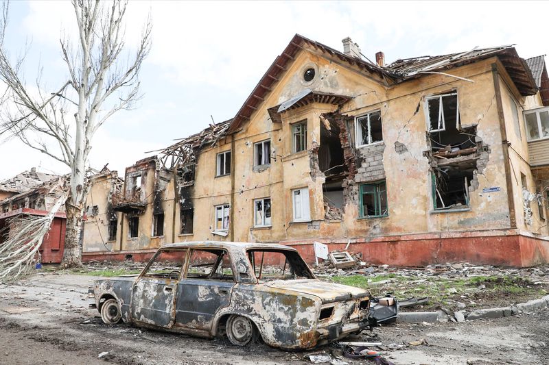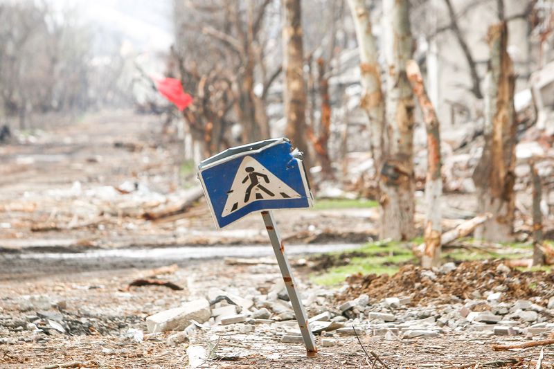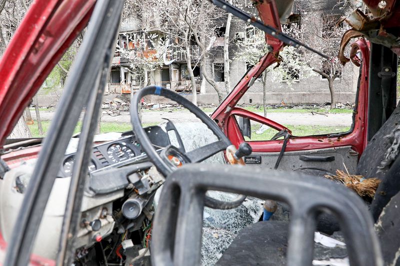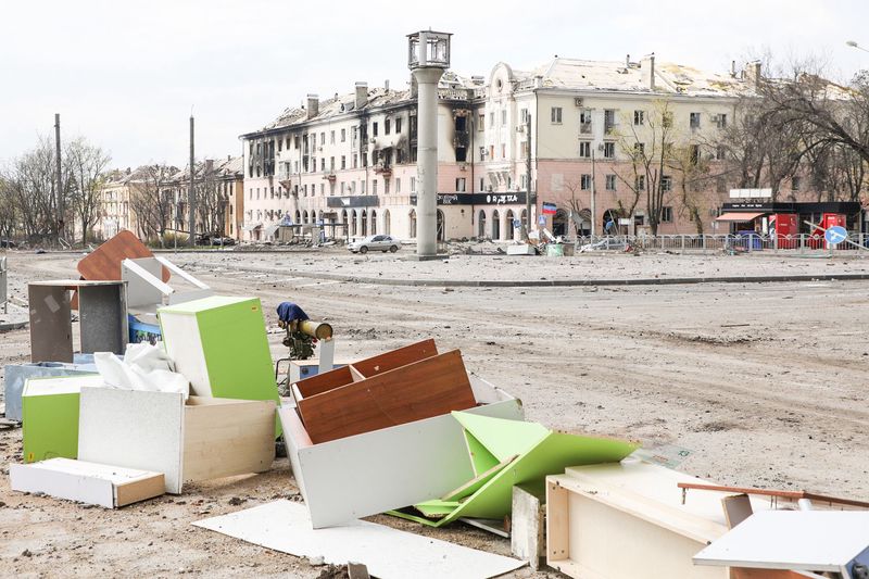 Дороги в Мариуполе усеяны битым стеклом, кирпичами, упавшими деревьями и сгоревшей техникой.Фото: Владимир Аносов/ РГ
