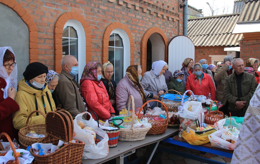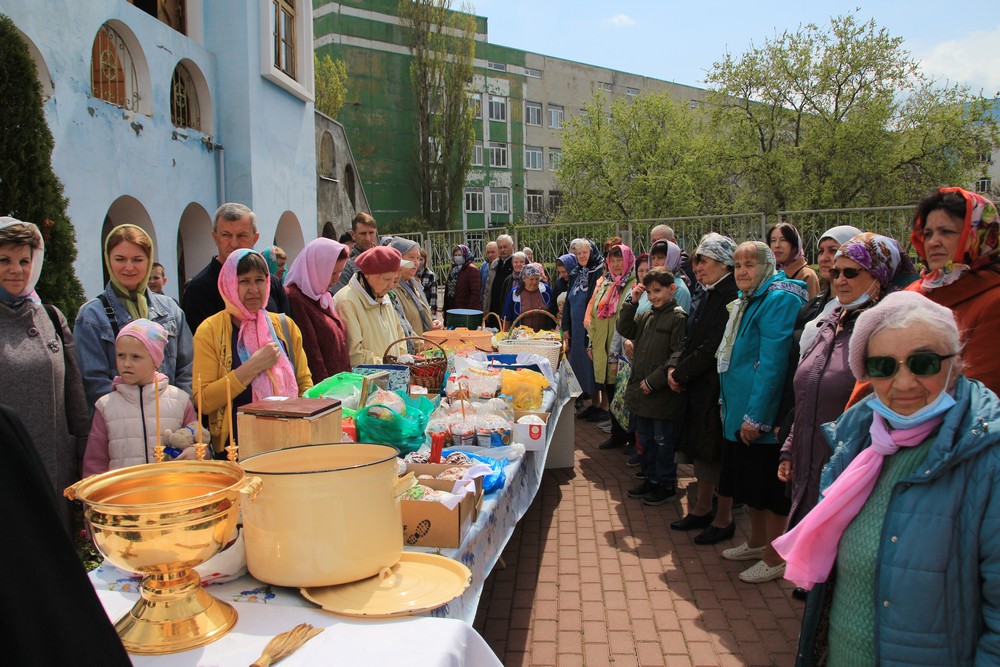 В кафедральном соборе Рождества Христова владыка также освятил куличи, которые получат вынужденные переселенцы из Донбасса.