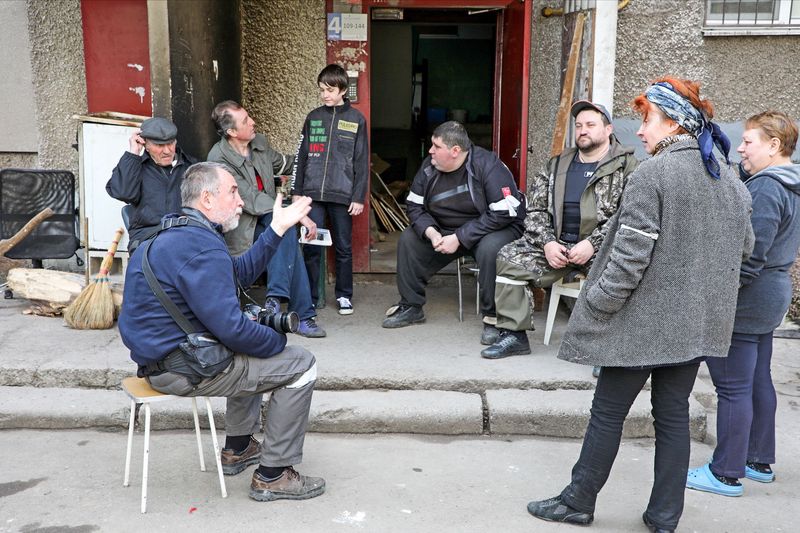 Ее позицию разделяют и 20 других обитателей подъезда. Жизнь в охваченном боями городе сплотила их — люди сообща ходят за водой к Азовскому морю и также вместе за гуманитарной помощью, добывают дрова и готовят на костре пищу.