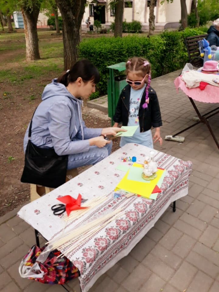 Руководитель объединения Анна Сельдюкова проводила мастер-класс для детей по изготовлению праздничного сувенира из бумаги – вертушки на деревянной палочке. Детвора была очень довольна таким сувенирам.