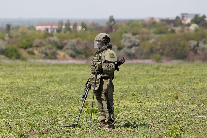 Дорогу расчищают к электроподстанции, которая обеспечивала электричеством практически весь Мариуполь. Подстанция совсем не пострадала, однако на ее пути могут быть мины, растяжки и неразорвавшиеся снаряды.