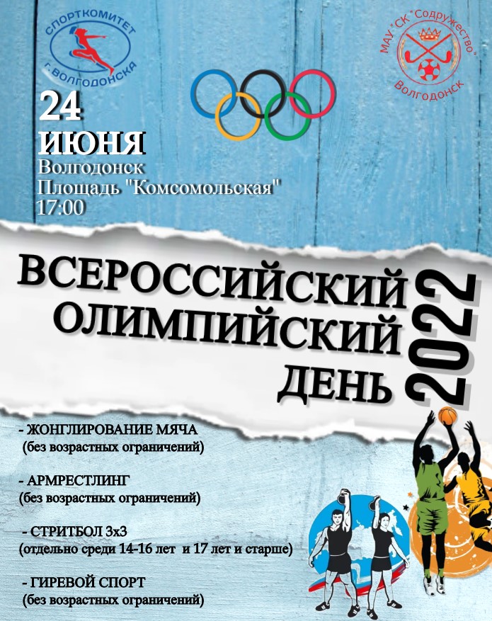 В Волгодонске спортивный праздник, посвященный Олимпийскому Дню, состоится 24 июня, в пятницу, в 17 часов на Комсомольской площади (афиша кликабельна).