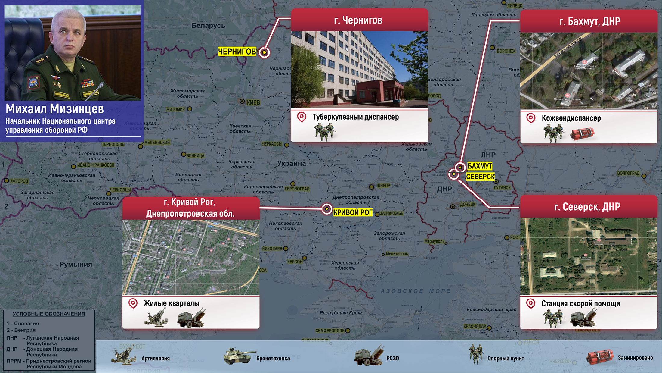 Во вторник вечером руководитель межведомственного координационного штаба по гуманитарному реагированию, начальник Национального центра управления обороной РФ генерал-полковник Михаил Мизинцев рассказал, что 18 июня в санаторий министерства охраны здоровья Украины «Приморский», который находится в населенном пункте Курортный Одесской области, приезжали сотрудники СБУ.