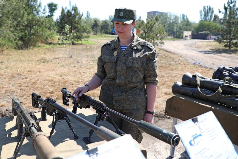 По словам гвардии прапорщика с позывным «Алекса», кроме бронированной техники народной милицией в боях за Мариуполь было захвачено много и стрелкового оружия. На стенде представлены две снайперские винтовки, состоящие на вооружении НАТО, и одна украинская.