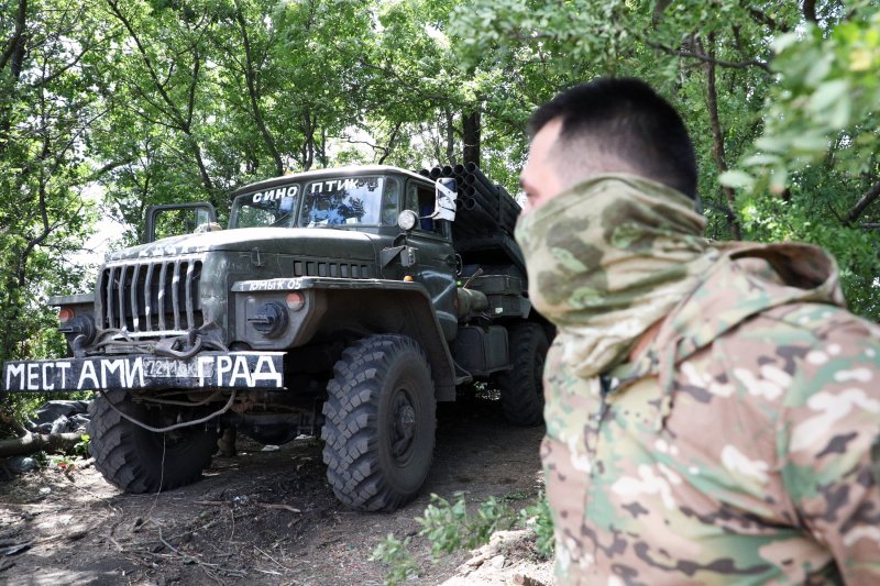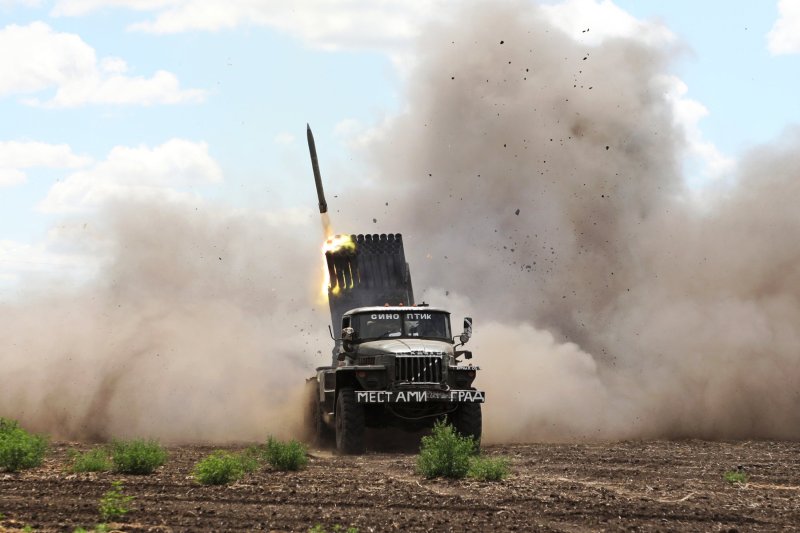 Буквально через минуту машина уже готова к стрельбе. Звучит команда «Огонь!», и раздается надсадный вой вылетающих реактивных снарядов. По украинским позициям выпущен полный пакет «Градов», а это 40 ракет. «Местами «Град», — вспоминается надпись на машине. Буквально через минуту «Урал» уже переведен в походное положение, и водитель дает сигнал к началу движения. Группа быстро уезжает с места стрельбы, или, как называют этот маневр артиллеристы, делает перекат.