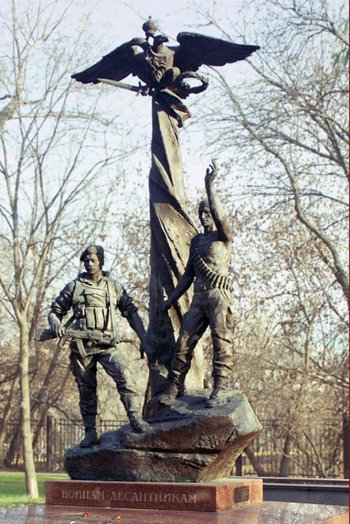 В июле 2000 года Владимир Путин, ставший президентом страны, подписал указ об увековечивании памяти десантников. В том числе: установить в Пскове памятник, а в Москве, совместно с правительством Москвы, у входа в Центральный музей Вооруженных сил РФ — памятный знак. Но мэр столицы Юрий Лужков распорядился поставить величественный монумент, который появился в 2002 году. У его основания высечена надпись: «Воинам-десантникам». А сбоку прикреплена табличка: «Памятный знак, посвященный погибшим десантникам 6-й роты 104-го гвардейского парашютно-десантного полка 76-й гвардейской воздушно-десантной дивизии». Таким образом, указ президента тоже был выполнен.