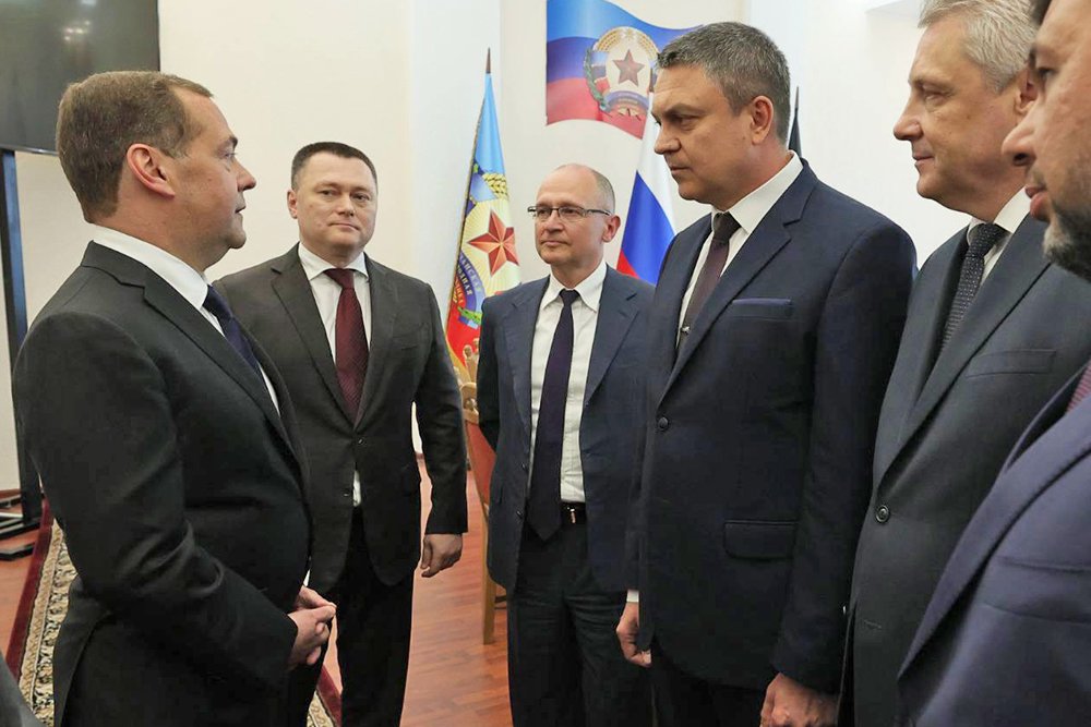 Накануне в Луганске Медведев посетил Луганскую народную республику, где встретился с главами ЛНР Леонидом Пасечником и ДНР Денисом Пушилиным.