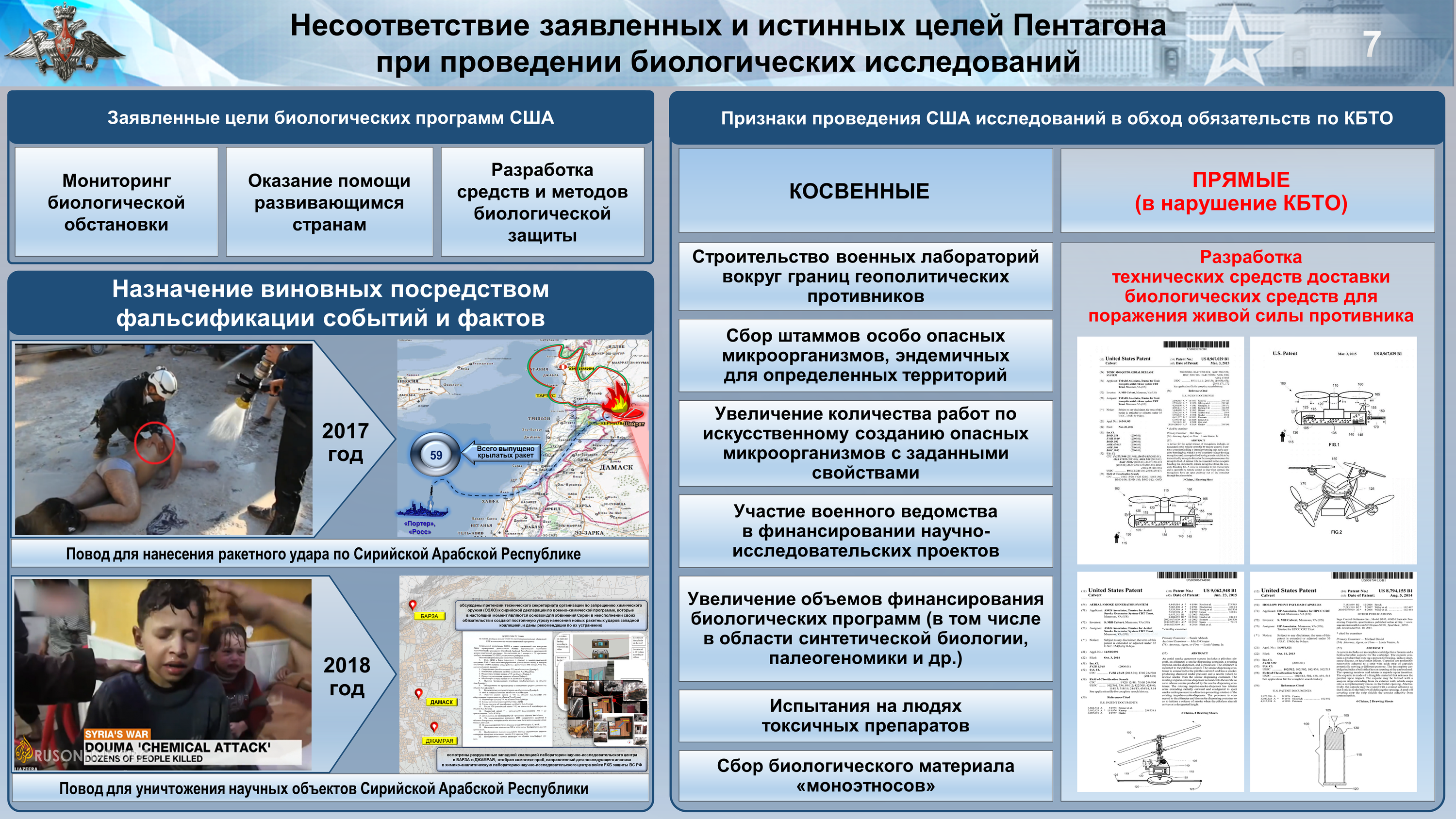 «Возникает вопрос — с какой целью США осуществляли разработку и патентование технических средств доставки биологического оружия. И чем обусловлена заинтересованность Украины в приобретении подобных технических средств?», — заключил начальник российских войск РХБЗ.