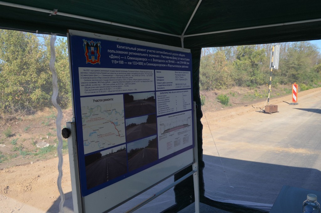 Работы на участке км 119+100 – км 133 + 000 автодороги от Ростова до Волгодонска протяженностью 14 км стартовали в 2021 году. На сегодняшний день фактическая готовность объекта составляет 85%. Помимо приведения в нормативное состояние дорожного полотна, подрядная организация устанавливает восемь автопавильонов, оборудованных туалетами и автономными светодиодными светильниками, запитанными от солнечных батарей.