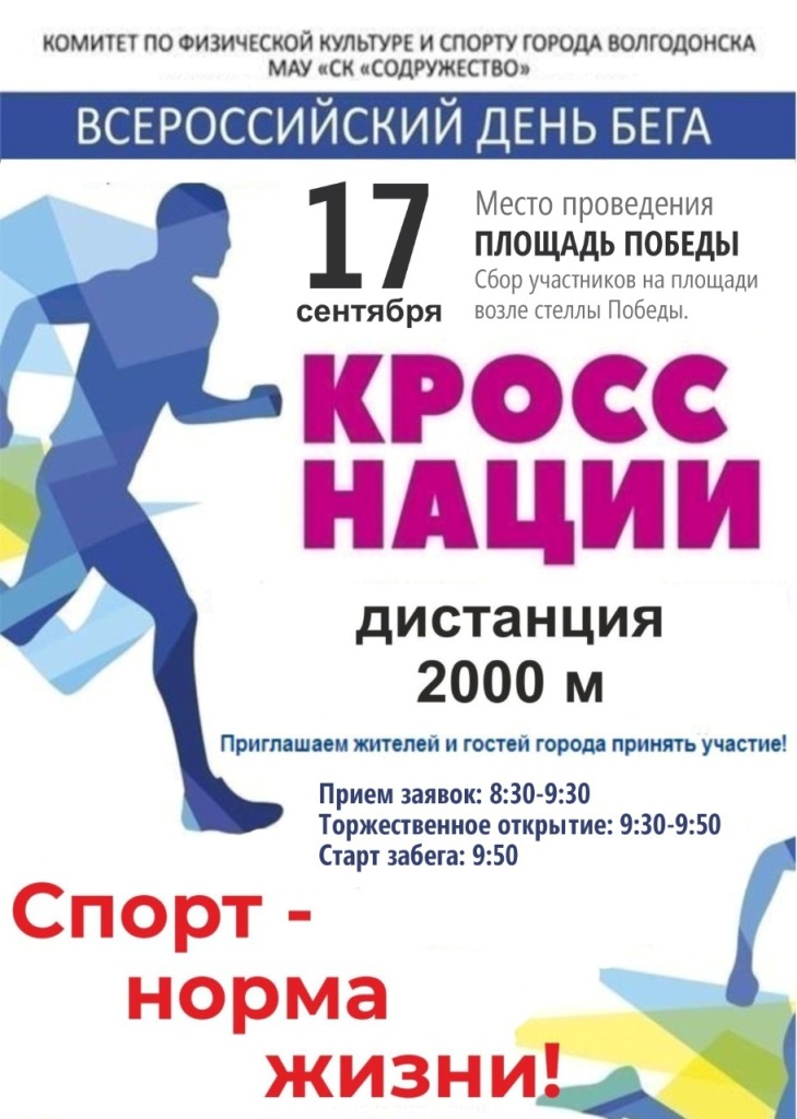 17 сентября, во Всероссийский День бега, в Волгодонске планируется проведение агитационного забега «Кросс нации».