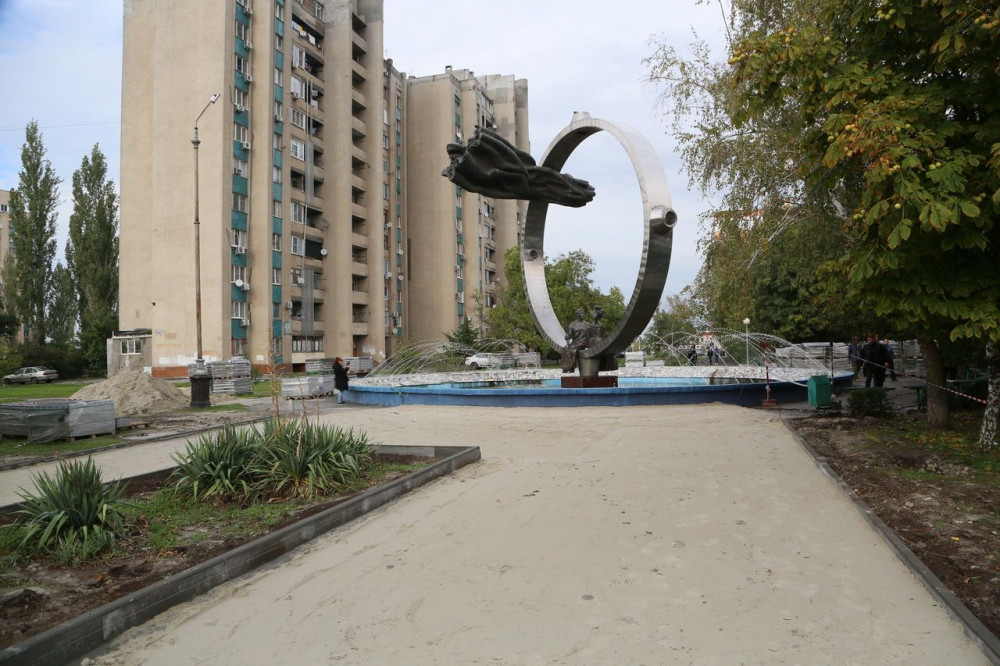 В сквере Машиностроителей (стоимость работ 2,3 млн рублей) подрядчик подготовил основание под укладку новой тротуарной плитки вокруг фонтана и центральной композиции «Любовь». Будет замощено плиткой 625 кв. метров. Реконструкция самого фонтана в контракт не входит. На его капремонт (с укреплением и облицовкой чаши мрамором) нужно около 2 млн рублей. Средства на фонтан планируется изыскать в 2023 году.