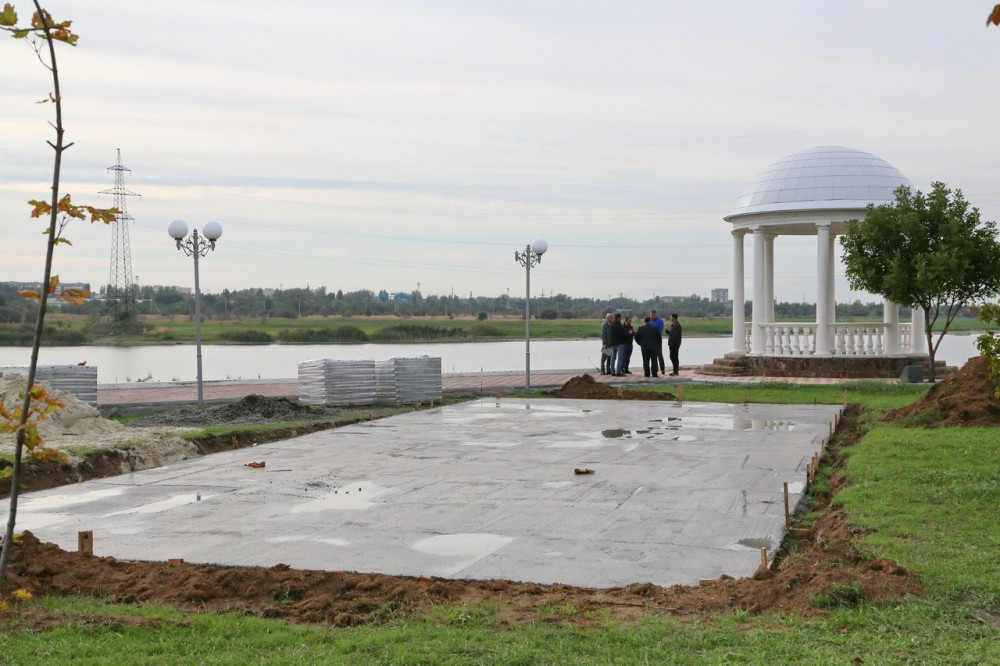В сквере Бакланова (контракт на 2,6 млн рублей) будет обустроена сцена в виде стилизованной палубы корабля, а вдоль опорной стены рядом с ротондой появится новый широкий тротуар — часть работ по укладке плитки на нем уже выполнена.