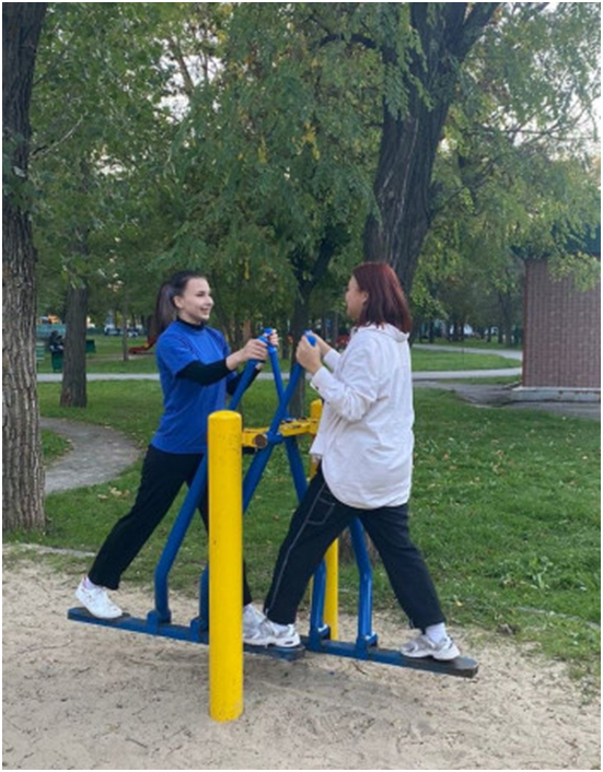 В ходе акции волонтеры провели беседу с жителями города о том, что им помогает поддерживать здоровый образ жизни и предложили вместе выполнить комплекс упражнений на спортивной площадке.