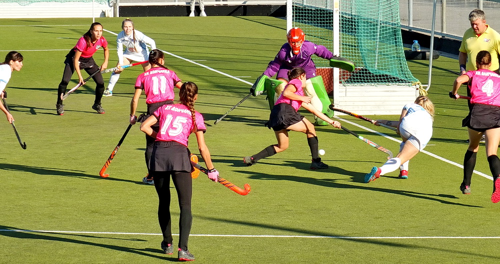 На стадионе «Спартак» продолжаются игры общего тура чемпионата России по хоккею на траве среди женских команд.