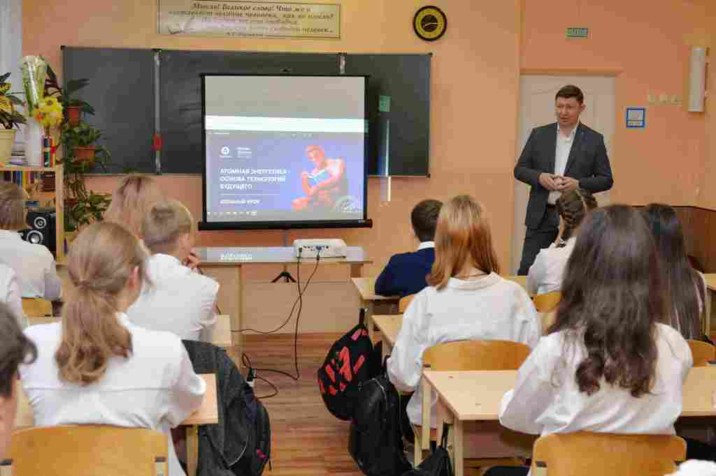 24 октября в школах России в рамках проекта министерства образования «Разговоры о важном» прошли открытые уроки на тему «Россия – мировой лидер атомной отрасли». В Волгодонске такое занятие в одной из школ провел глава города – председатель Волгодонской городской Думы Сергей Ладанов.