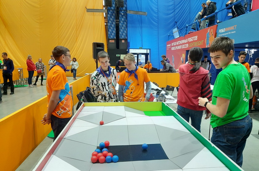 Сопровождающие детей педагоги тоже не сидят без дела. Так Дарья Сергеевна Шевердяева во время соревнований работала судьёй на категориях «Большое путешествие» и «Футбол гуманоидных роботов», а Александр Константинович Бильченко участвовал в симпозиуме с докладом «Система хранения полей и реквизита для робототехнических соревнований».