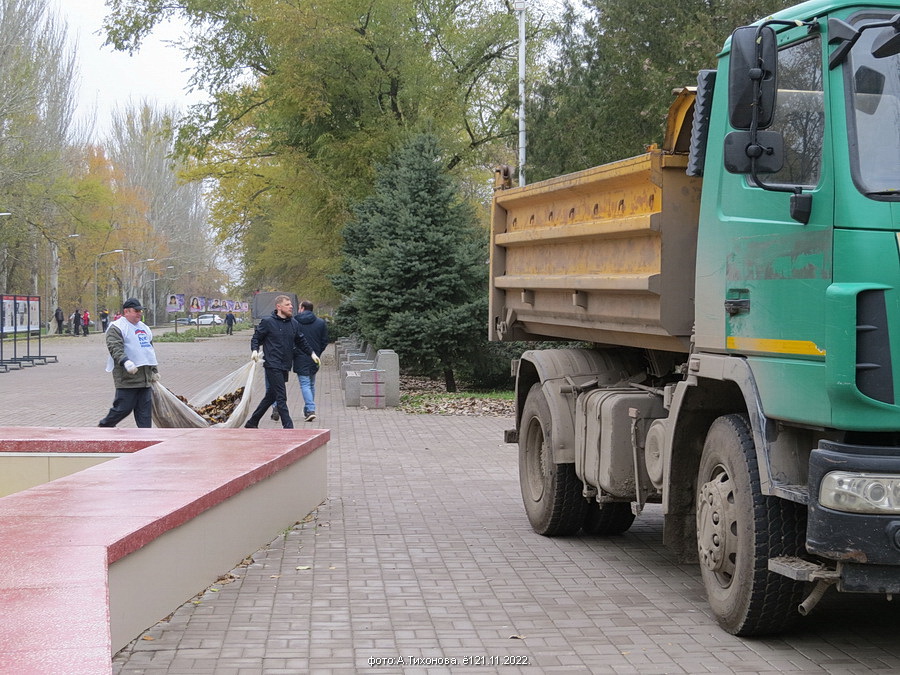 Десятки машин и тракторов загружались быстро, главное, что бы эти большегрузы не попортили уложенные плиткой аллеи.
