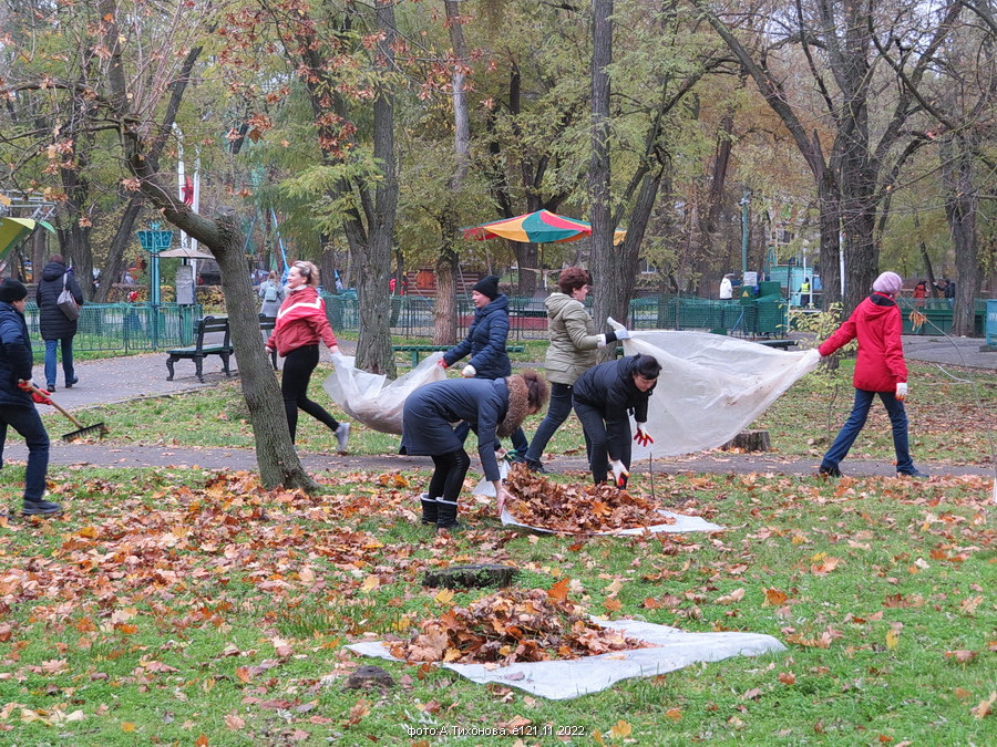 Ну, что ж, бесплатный, так бесплатный решили горожане и дружно вышли на сегодняшний субботник (не важно, кто организовал) по уборке листвы в парке Победы. Работали дружно, с настроением, видимо соскучились по хорошему коллективному труду.
