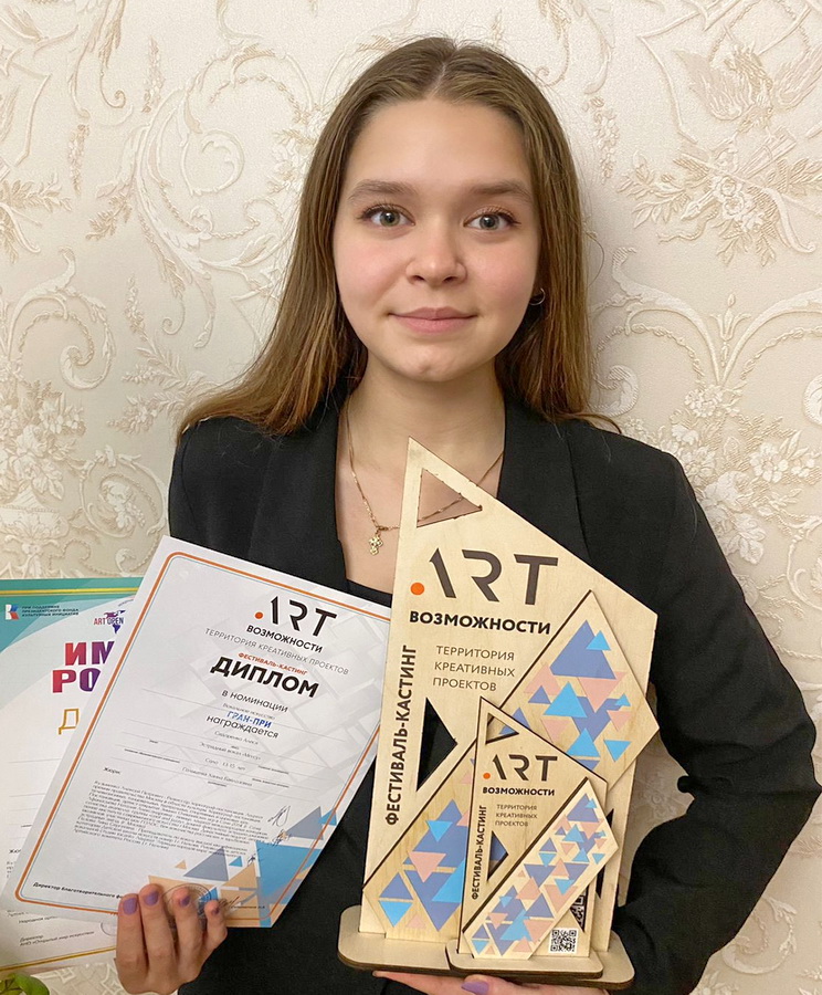 В свой родной город девчонки вернулись с победами – лауреаты 1 и 2 степени. По итогам отборочного этапа фестиваля-кастинга «ART возможности» в возрастной категории 13-15 лет лучше всех оказалась вокалистка из Центра детского творчества Алеся Сидоренко. Ей удалось завоевать гран-при конкурса. По условиям конкурса победители проходят в финал, который пройдет в городе Ростов-на-Дону. Лучшие среди финалистов поедут на суперфинал в Москву. Алеся также стала обладателем гран-при международного конкурса «Имена России».