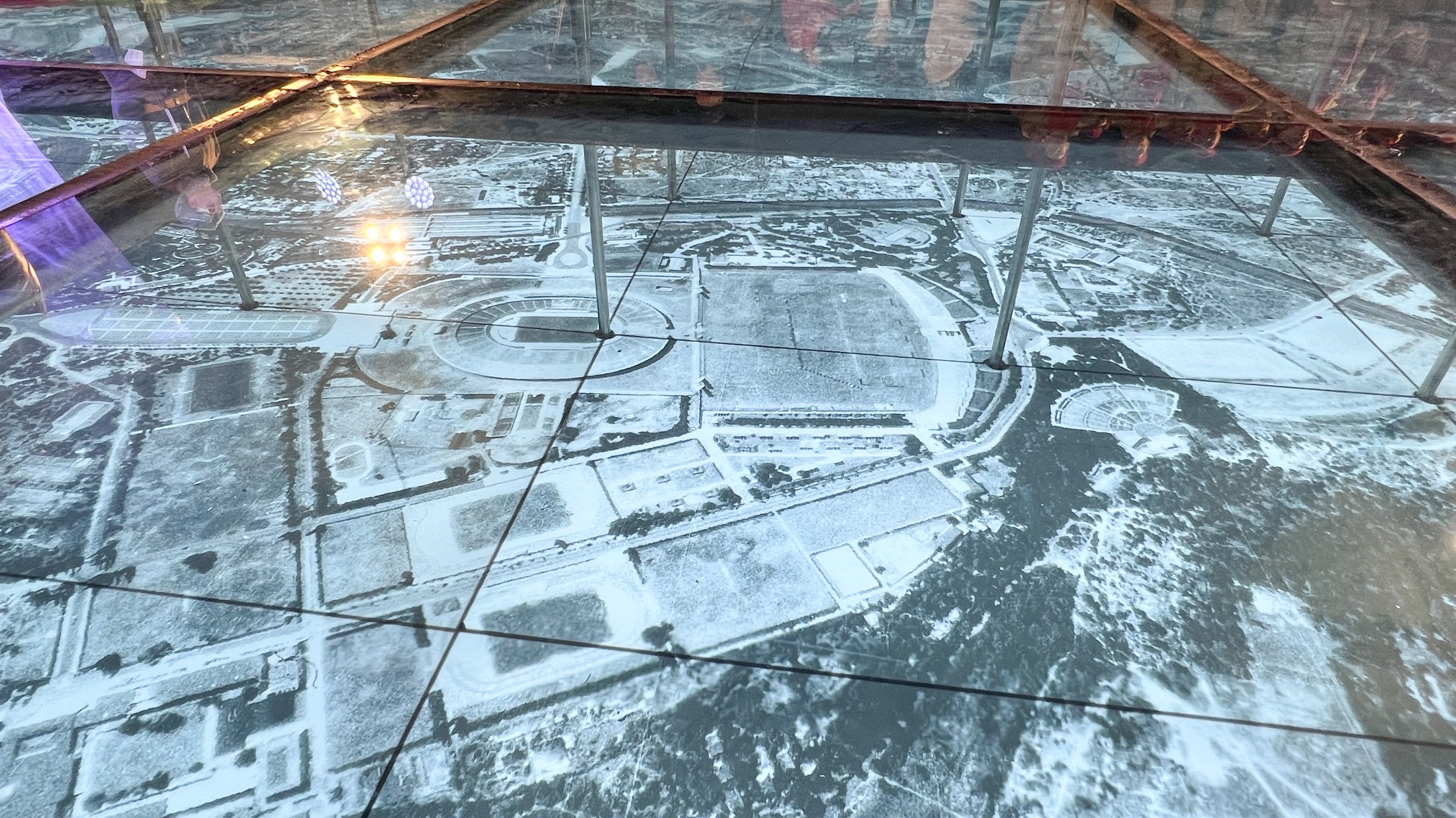 А под стелой, на глубине двух метров, располагается карта-диорама, воссозданная по реальным картам Берлина 1966 года. Через стекло зритель видит его жилые кварталы, улицы и дома — именно так, как видели их на высоте четыре тысячи метров в последние секунды жизни русские летчики.