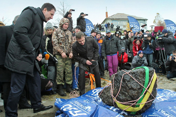 С учетом того, что во время транспортировки от небесного тела отломилось два небольших фрагмента, полная масса, по мнению специалистов, могла превышать 600 килограммов.Фото: Анатолий Колющенко, пресс-служба губернатора Челябинской области