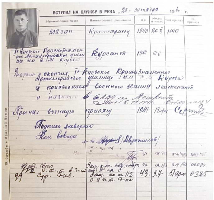 Ещё с большим интересом принимается учётная карточка офицера. Вглядывается Анна Павловна в крошечную фотографию, увлажняются её глаза. Я не выдерживаю, открываю портфель и ставлю перед ней большой портрет в рамке (копия маленького снимка курсанта от 10 июля 1941 года). Конечно же шок…